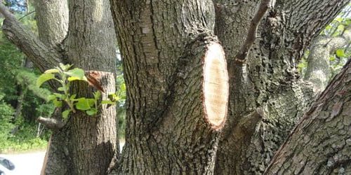 A large limb has ripped off my Bradford pear tree, leaving a huge gash...