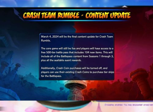 Crash Team Rumble, the 4v4 competitive multiplayer game, is getting its final content update...