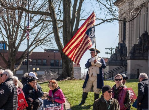 Large crowds protested Saturday against the war in Iran and President Donald Trump’s actions in “No...
