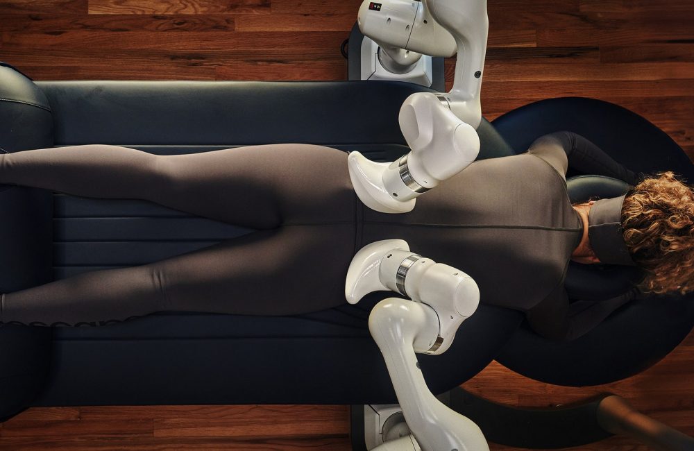 The next step is a body scan. Directly above the massage table are infrared sensors that capture a 3D computational model of the body. Aescape says this generates over 1.1 million 3D data points that accurately map your body’s position and identify key areas for the targeted massage. Basically, it’s what helps the Aerpoints know exactly where they are relative to your body.