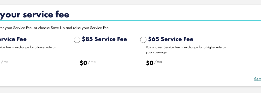 While their plan options are affordable, the two basic coverage options don’t include many covered items, so we gave 2-10 Home Warranty a 7.5. However, 2-10 gives the option to choose your own service fee amount, shown below, which gives you more control over your monthly rate.