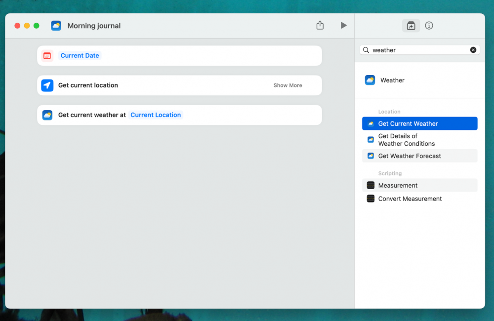 I could gather all of the above information myself manually, every morning. But I’ve found it’s a lot faster to use Apple Shortcuts for the job. This application, which comes preinstalled on every Mac, iPhone, and iPad, can automatically pull in all kinds of information and format it nicely for my journal. I run a custom automation every morning. Here’s how I built it.