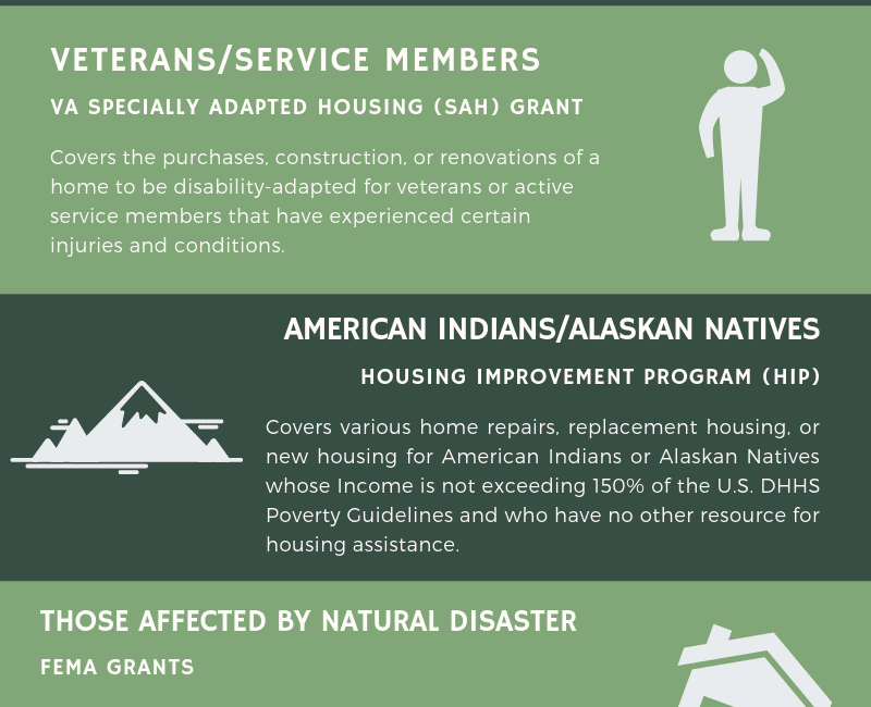 Information on applying for home repair grants can be found on each website. The following are federal government websites to get you started.