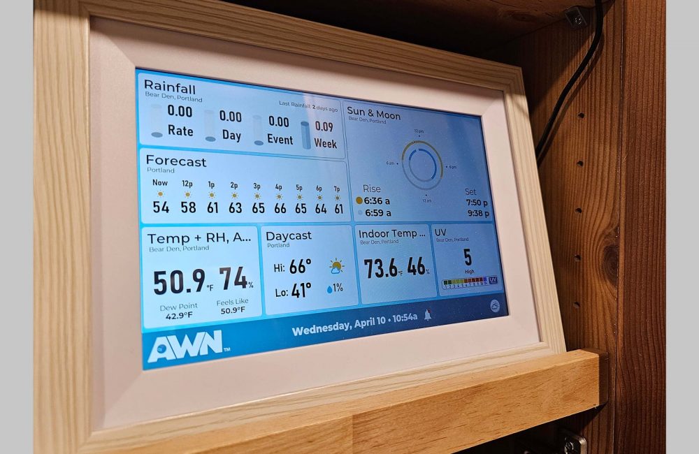 That might not be you, but it is almost certainly someone you know. I love being away from home and knowing how wet the soil in my garden is, that my house temp and humidity are correct. I like seeing when the sun and moon are going to rise and set at a glance, and knowing how many inches of rain, at a spot above my head, we have gotten in rainy north Portland. Every time my dad and I get together, if we’re not talking about Formula One or the local soccer team’s current woes, we’re talking about what our stations are telling us.