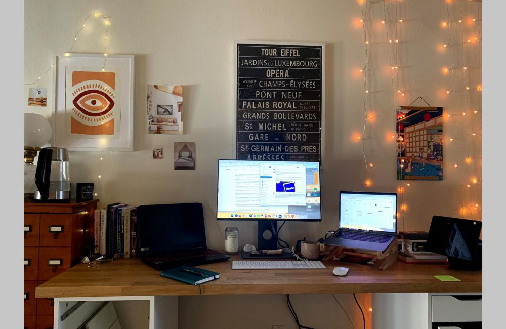 This is my desk circa April 2021. I became a big co-op gamer over the pandemic since playing games like Deep Rock Galatic and Stardew Valley was an easy way to stay close to my friends. Originally, I was exclusively a Nintendo Switch girl, but once my addiction to Animal Crossing: New Horizons ended, I moved on to PC games.