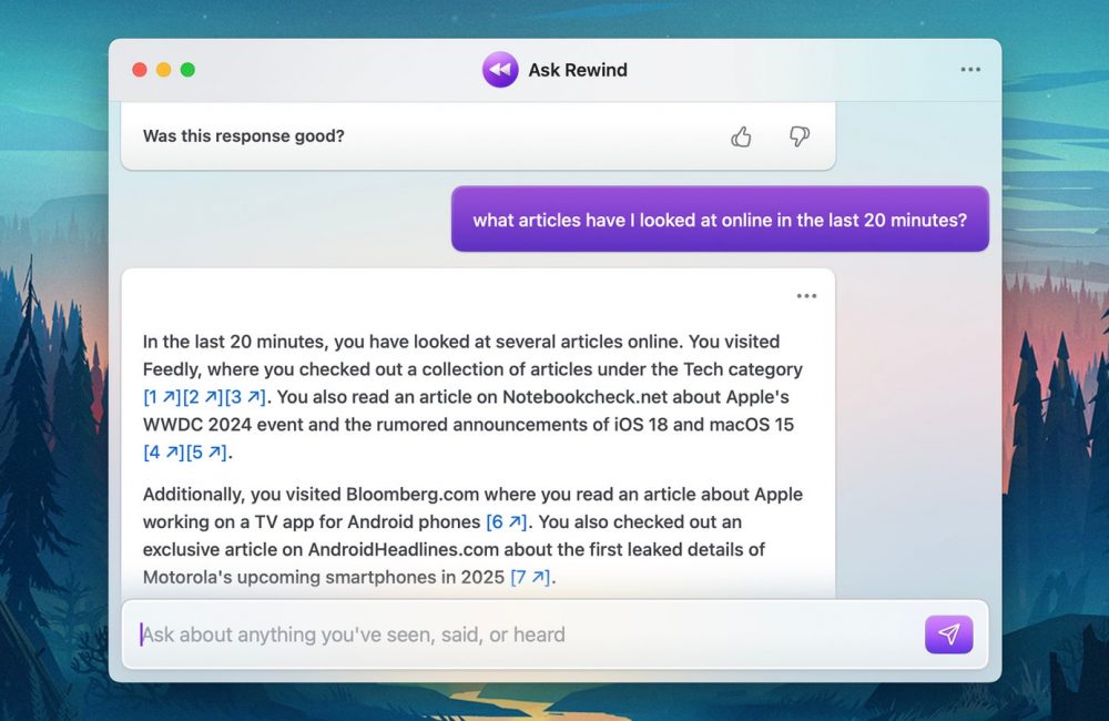Head to rewind.ai to get hold of Rewind for macOS, which is a more mature and more feature-rich application than Windrecorder. You can use Rewind for free, but features such as unlimited searching and a personalized AI bot will cost you $29 a month. (There is a 30-day free trial of Rewind Pro you can try out, and you get a discount on your Pro subscription if you pay for a whole year upfront.)