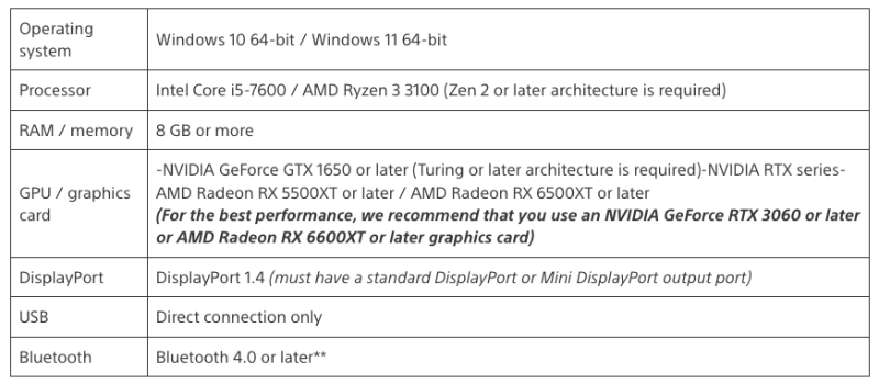 Here’s a look at the minimum PC requirements to use PlayStation VR2 on your PC: