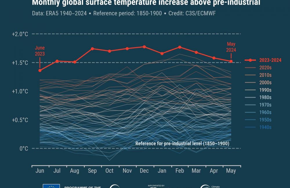 On Wednesday, the European Union’s Earth-monitoring service, Copernicus, announced that it has now been a full year where every month has been the warmest version of that month since there’s been enough instruments in place to track global temperatures.