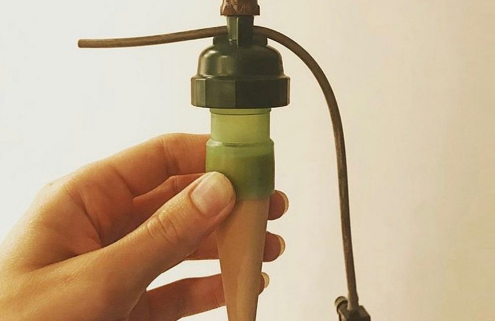 Ludicrous amounts of research later, I zeroed in on a solution. An Austrian company named Blumat has a system that uses a spike-shaped sensor (called a “carrot,” more colloquially) that has a ceramic cone under a sealed water chamber. The whole thing is capped with a diaphragm that’s connected to a tiny valve at the very top, making it like an autonomous, fancy, sealed, freestanding valve that controls flow through a 3-millimeter drip tube. When the soil around the cone becomes dry, osmosis through the ceramic pulls down a diaphragm at the top, gradually opening the valve and allowing water to flow through the tube. When the soil is moist, the diaphragm rises and the valve closes.