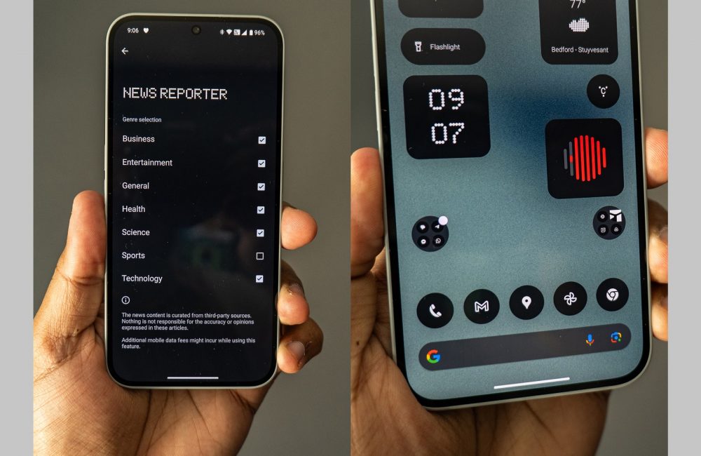 The “News Reporter” widget, available by default on all Nothing and CMF smartphones plus other Android and iOS devices via the Nothing X app, lets you quickly play a news bulletin summarized by artificial intelligence. It is read out by the synthesized voice of Tim Holbrow, the company’s chief financial officer. (Nothing is using ElevenLabs’ tech for sound synthesis and output.) As soon as you tap the widget, you’re greeted by a soothing British voice: