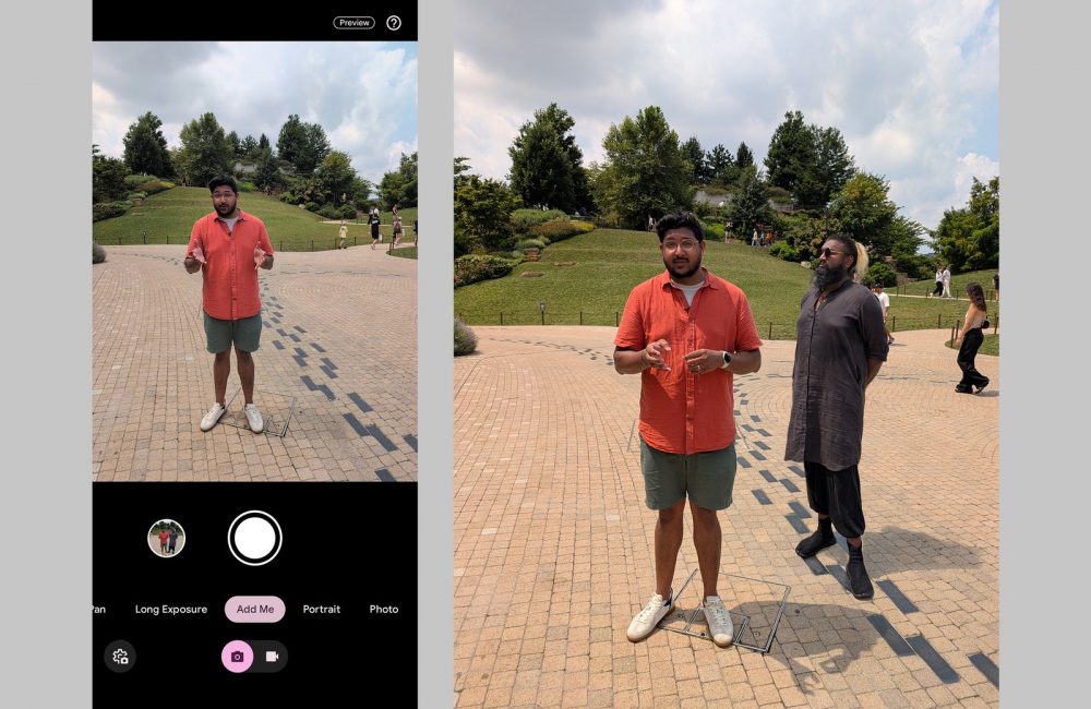 This is a special mode in the Pixel 9 phones that first asks you to scan the surrounding area briefly. Then you’ll snap a picture of your loved one in front of the subject, and then swap places. When they take over photo-capture duties, they’ll see a faded-out image of themselves in the camera preview, and the camera app will suggest a place for the second person to stand. Once they press the shutter button, it’ll superimpose the images so it appears as if both people were standing right next to each other, even when they weren’t.