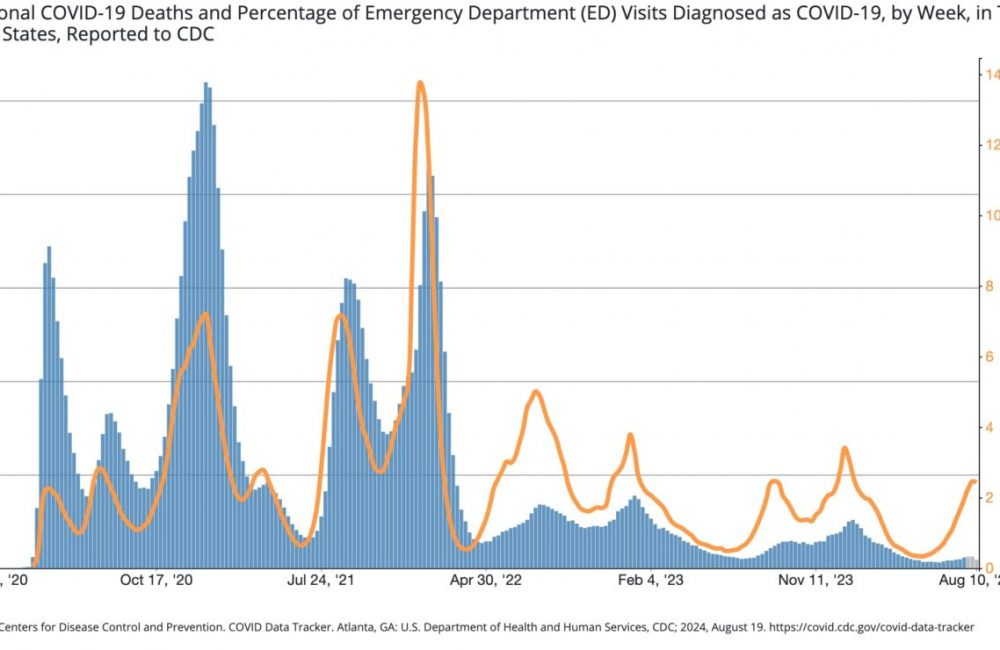The good news is that given the substantial accumulation of protection from past infections and vaccinations, the two most serious metrics—emergency department visits and deaths—have not shown similar rises. The weekly percentage of emergency department visits with a Covid-19 diagnosis is low and similar to last year’s summer wave. Deaths are likewise low, though they are still only provisional counts for the most recent weeks.