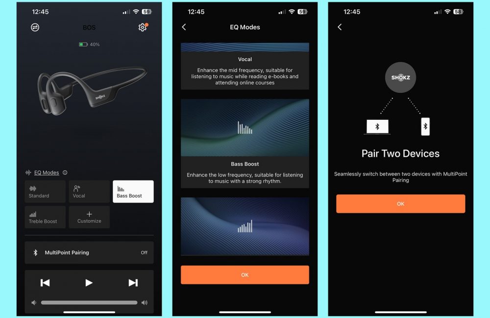 Rather ambitiously, Shokz promises these sports headphones can deliver clear highs and natural mids and that the new dual air conduction unit design manages to produces pure vocal sound. The air conduction certainly delivers the bass, while the bone conduction handles the rest. In the battle to compete with traffic, wind and the gym stereo, there’s some winners and losers here. The bass is a big improvement, with a noticeable uptick in warmth and punch.