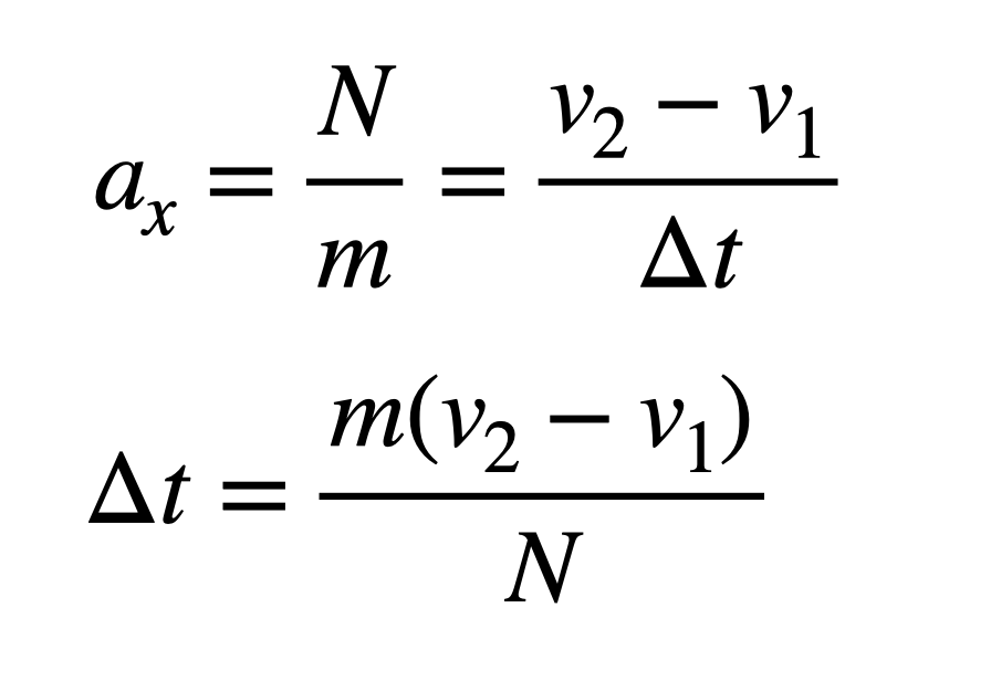 How much time do you have to do the turnaround? With the normal force and mass of the person, we can calculate the horizontal acceleration ax. By definition, that in turn equals the change in velocity per unit of time (Δt), so we can use that to solve for the time interval: