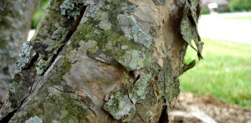 Beautiful exfoliating bark on Japanese Kousa dogwood provides winter interest.