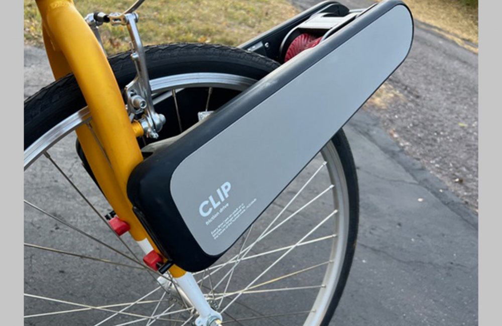 Once the Clip is secure in its three positions, the bike is ready to roll and can be electrified whenever the rider chooses to engage via a friction drive. A friction drive differs from a traditional motor in that the front wheel’s power is activated by surface friction rather than the teeth of the cogs in a motor. (Because of this need for friction, it’s essential to keep the front tire inflated to 85 PSI at all times.)