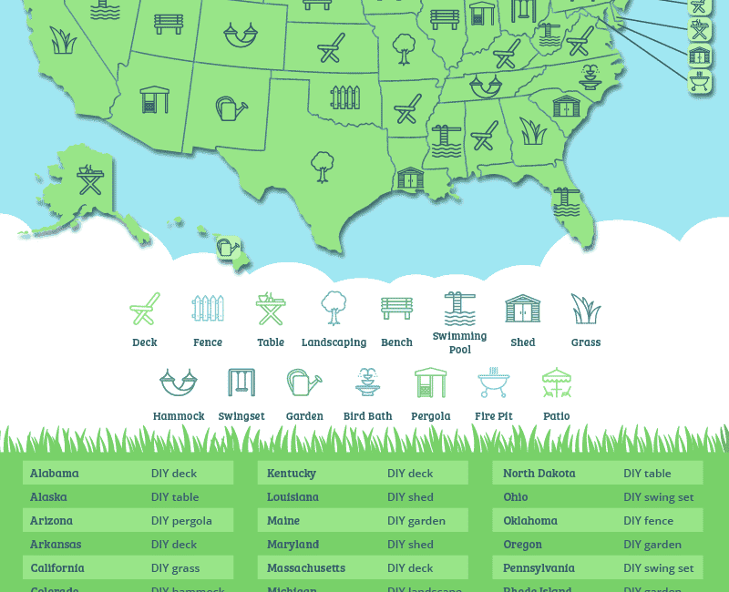 Homeowners across the country have different preferences regarding outdoor DIY projects, often influenced by climate, available space, and regional trends. Based on Google Trends data, certain projects stand out as favorites in various state