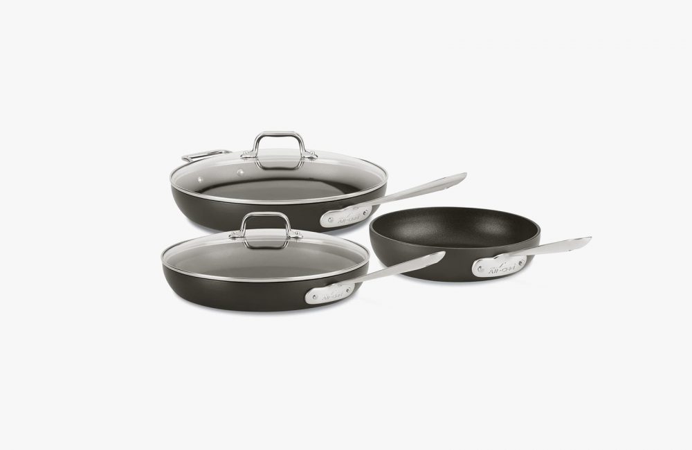 It’s time to get rid of your old, warped nonstick. This set comes with 8-inch, 10-inch, and 12-inch pans, plus two lids for the larger pans. All-Clad nonstick pans are some of the only pans I’ve used that don’t warp over time. The handles are easy to grip and the high walls of each pan help minimize splattering, while the flat bottoms help ensure even heat distribution. They’re also induction-friendly and oven-safe.