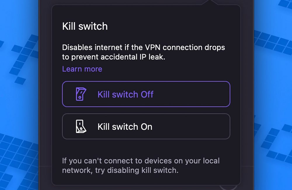 How you make use of a kill switch will depend on the VPN provider you choose and the features available in the software you get. Some VPNs don’t offer a kill switch, and those that do vary as to whether it’s enabled by default. If this is definitely a feature you want to make use of, find a VPN service that offers it.