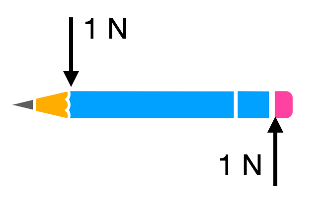 Here’s a little experiment: Place a pencil on a flat table and then, taking your two index fingers, push from opposite sides, right at the center. It just stays there, right? Because you’re applying equal and opposite forces, the net force is zero. But what if you push on it like this: