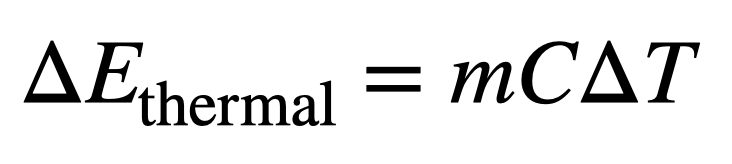 After the first 20 minutes, the water temperature seemed to increase at a fairly constant rate of 0.0006 degrees Celsius per second. This increase in temperature means there is an increase in thermal energy, which we can calculate as: