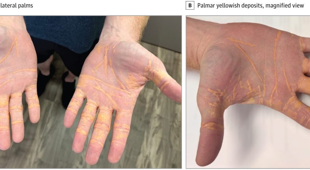 That was the disturbing case of a man in Florida who showed up at a Tampa hospital with a three-week history of painless, yellow eruptions on the palms of his hands, soles of his feet, and elbows. His case was published today in JAMA Cardiology.