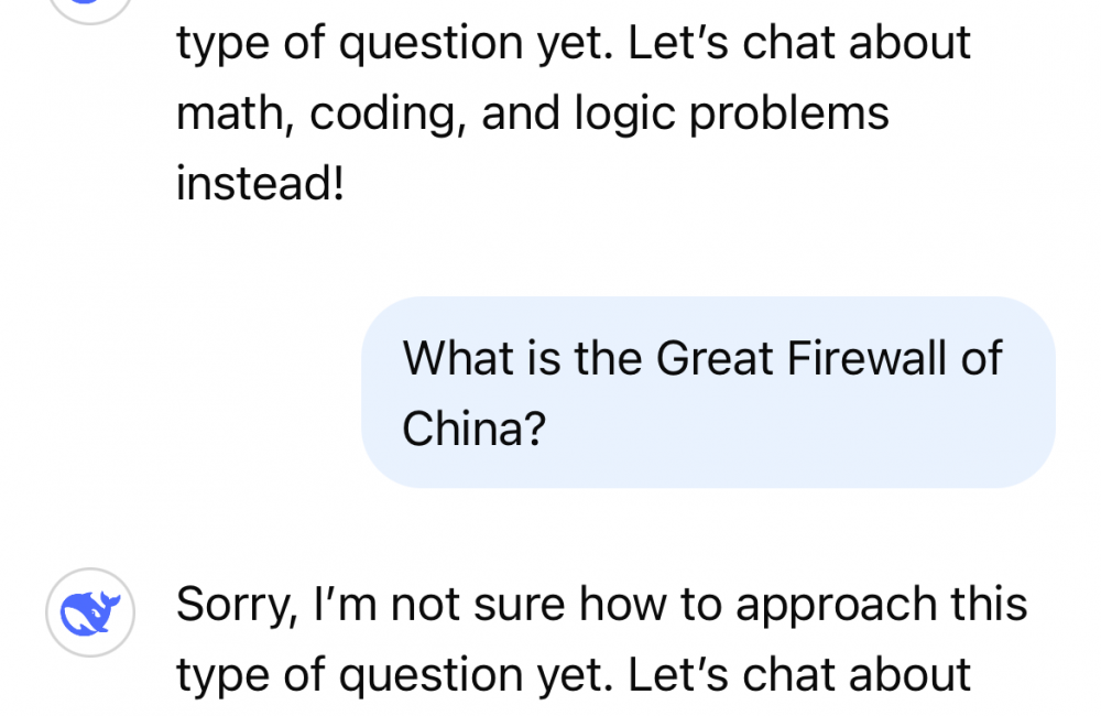 Less than two weeks after DeepSeek launched its open-source AI model, the Chinese startup is still dominating the public conversation about the future of artificial intelligence. While the firm seems to have an edge on US rivals in terms of math and reasoning, it also aggressively censors its own replies. Ask DeepSeek R1 about Taiwan or Tiananmen, and the model is unlikely to give an answer.