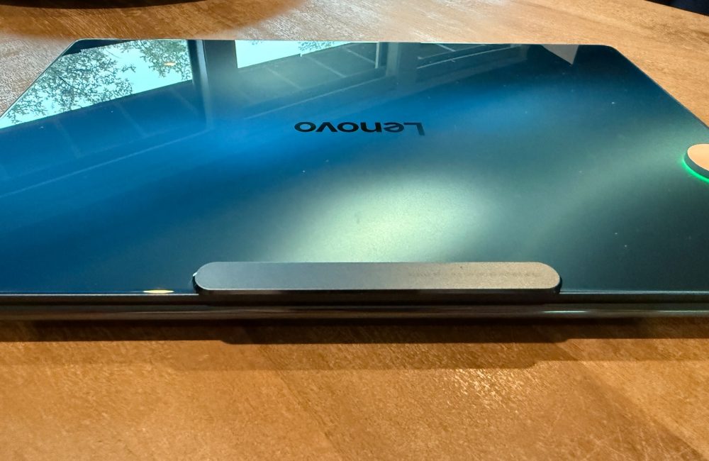 Before I dig deeper into that camera trick, let’s talk about the rest of the package. Though it’s crafted mostly from aluminum, the cover of the 14-inch laptop is made from highly reflective shimmering glass in a hue of “Tidal Teal.” It’s eye-catching but may be too flashy for some, which is probably why glass lids went out of fashion a few years back.