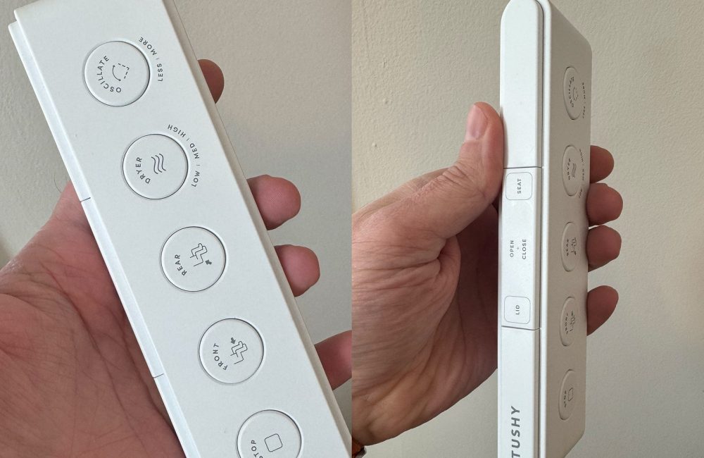 The Aura’s remote is intuitive by way of its simplicity—unlike with Toto’s higher-end models, there’s no way to adjust the spray’s width or angle, and there are no presets for different users—but it does have the most important spray adjustments, like back, forward, and flow strength. The fan speed can also be adjusted with three clicks of one button rather than having to click the fan button and then separately adjust its speed up or down, as with the Toto.