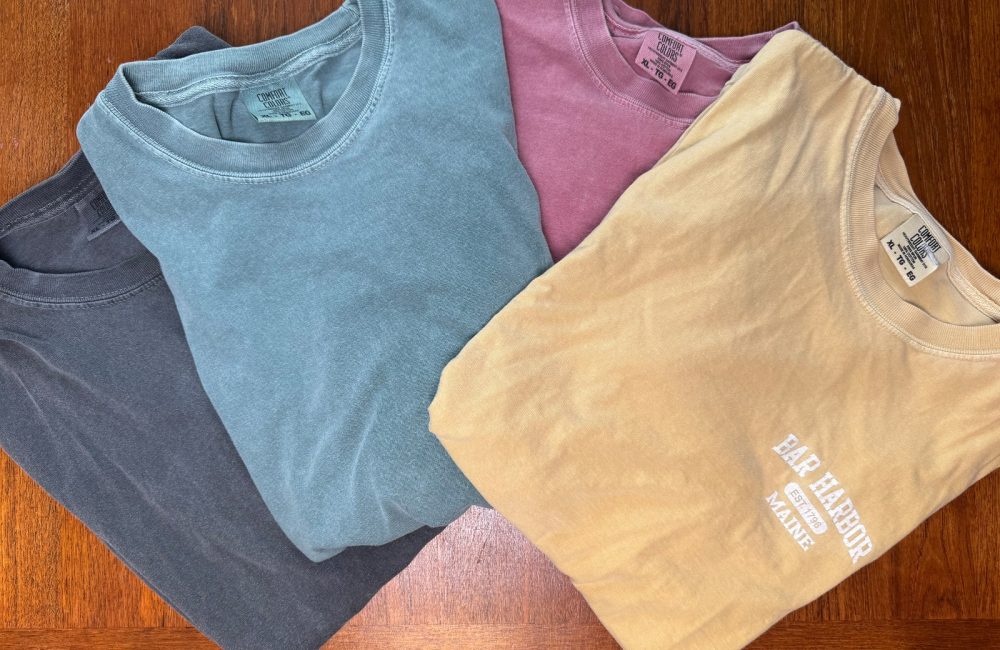 Last summer, I found my new fave at a chintzy tourist shop in Maine. It had the name of the town, Bar Harbor, printed on a butter-hued blank from a company called Comfort Colors. After a few wearings, I liked it so much I looked at the label to see what it was. I bought a second and have since been slowly replacing every T-shirt in my closet with shirts in the brand’s various comforting colors.