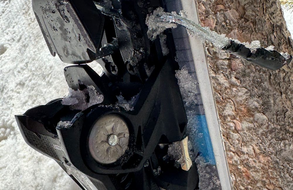 The Renoun skis I tested are also noticeably lighter than my regular ride, a pair of decade-old Armada TSTs the same length. The stats say there is a 100-gram difference per ski. That means the Renoun skis are roughly 5 percent lighter, though different bindings make it hard to compare directly. My demo pair has adjustable bindings, which are heavier than standard bindings, and the skis were still noticeably lighter.