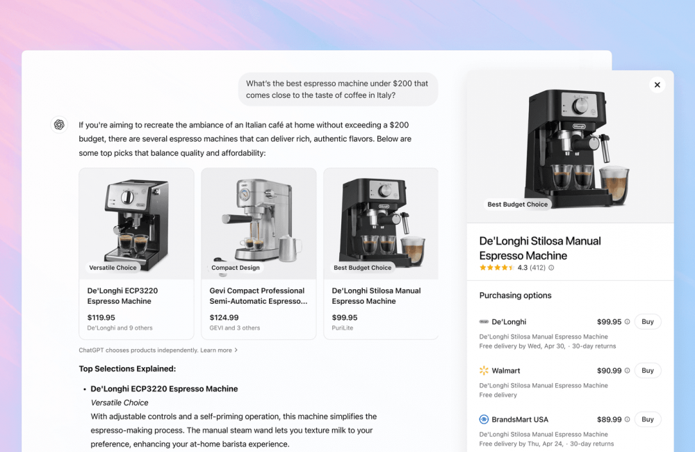 So how does ChatGPT choose which products to recommend? Why were those specific espresso machines and office chairs listed first when the user typed the prompt?