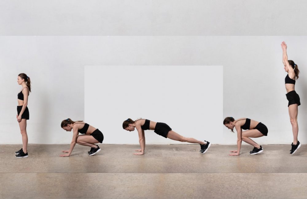 1. Burpees: This is a full-body exercise that combines a squat, jump, and push-up. It can help burn calories quickly and build strength and endurance.