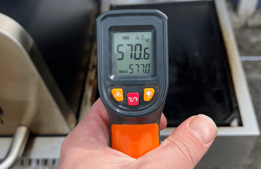 But a word on that griddle. It’s cast iron, with a high-powered propane burner very close underneath it.