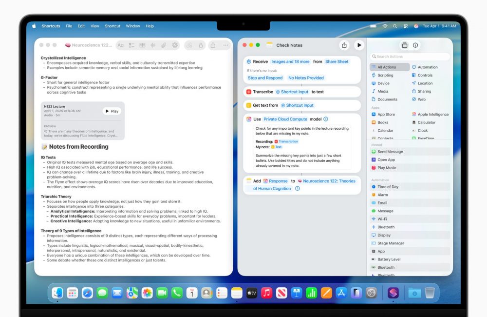 Shortcuts can be a really powerful way of automating tasks on your Mac. With MacOS Tahoe, these get upgraded by Apple Intelligence, letting you set up shortcuts like summarizing text or generating images. You can even tap into ChatGPT (or the on-device Neural Engine) if necessary, setting up chains of actions that could potentially be extremely useful. For example, you might create a Shortcut that compares notes from text in Notes from a lecture to an audio transcription, and then summarize the differences using Apple Intelligence.