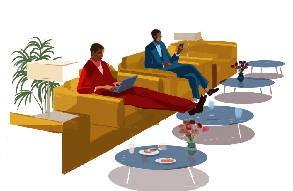 Delta, for instance, offers an á la carte, bistro-like dining experience, soundproof phone booths, and even external monitors for focused work at each of its flagship business lounges. “Each space is designed to balance comfort and luxury with practical efficiency,” says Claude Roussel, vice president of Delta Sky Club and lounge experience.