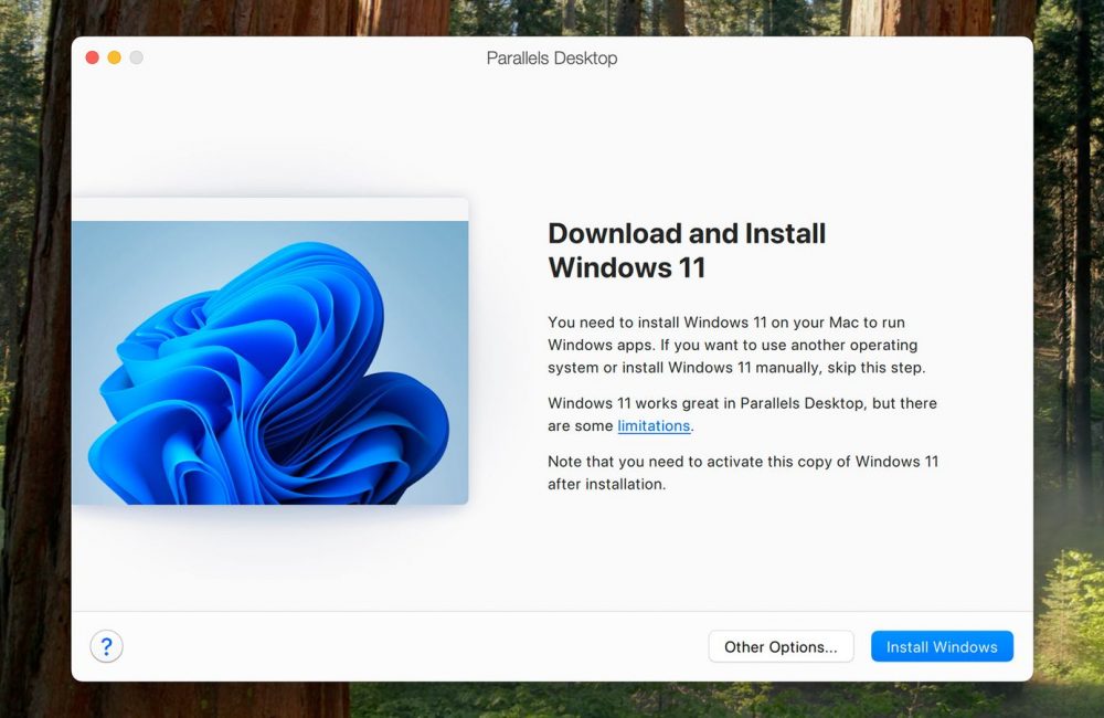 Follow the link to download the software, and once it’s installed on macOS, you’ll be taken through the setup process. Along the way, you’ll be prompted to download and install Windows 11, which is quite a hefty download: Click the Install Windows button to initiate the process.