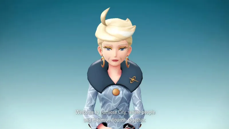 Before jumping in, an early cutscene plays, with the player character exiting a train into Lumiose. After being spotted on the streets by someone filming content about Lumiose tourism, the line of questioning is interrupted by a video ad from the Quasartico CEO, Jett. In the video, she lays out the corporation’s plans for Lumiose, setting the stage for the adventure to come.
