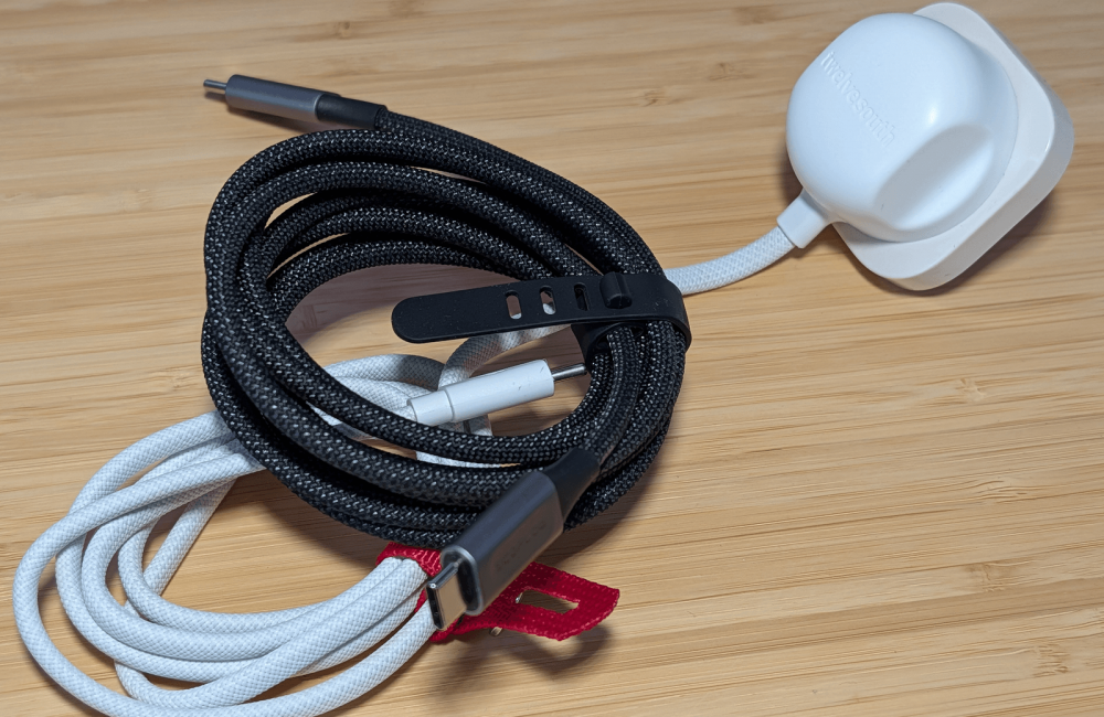 QDOS PowerMotion Ultra for £40: This USB 4.0 cable is a solid alternative to our top picks for folks in the UK, combining up to 240-watt charging with data transfer speeds up to 40 Gbps. It is relatively thick, feels durable, and comes with a lifetime warranty. I like the braided nylon finish and color-matched cable tie. I also tried the QDOS Powerloop (£20), a handy wearable charging cable that doubles as a lanyard strap. It’s thick, woven, and durable, with screw-off ends that reveal a USB-C cable capable of supplying 60 watts of power and 480 Mbps of data.