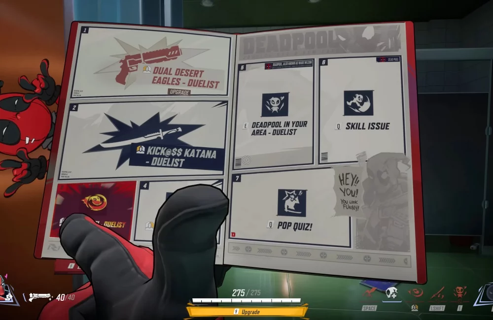 Even outside of the role-swapping, the merc with a mouth’s abilities are unique, to say the least. As he fights his foes, he’ll be able to level up his skills, opening up an in-game book-like menu to select what to unlock. He also has a move that deal damage to enemy players when they miss shots, as well as the ability to take photos with people he defeats. In the reveal trailer, we even see Deadpool using that photo mode to become invincible, absorbing Magneto’s Ultimate Ability with his butt.