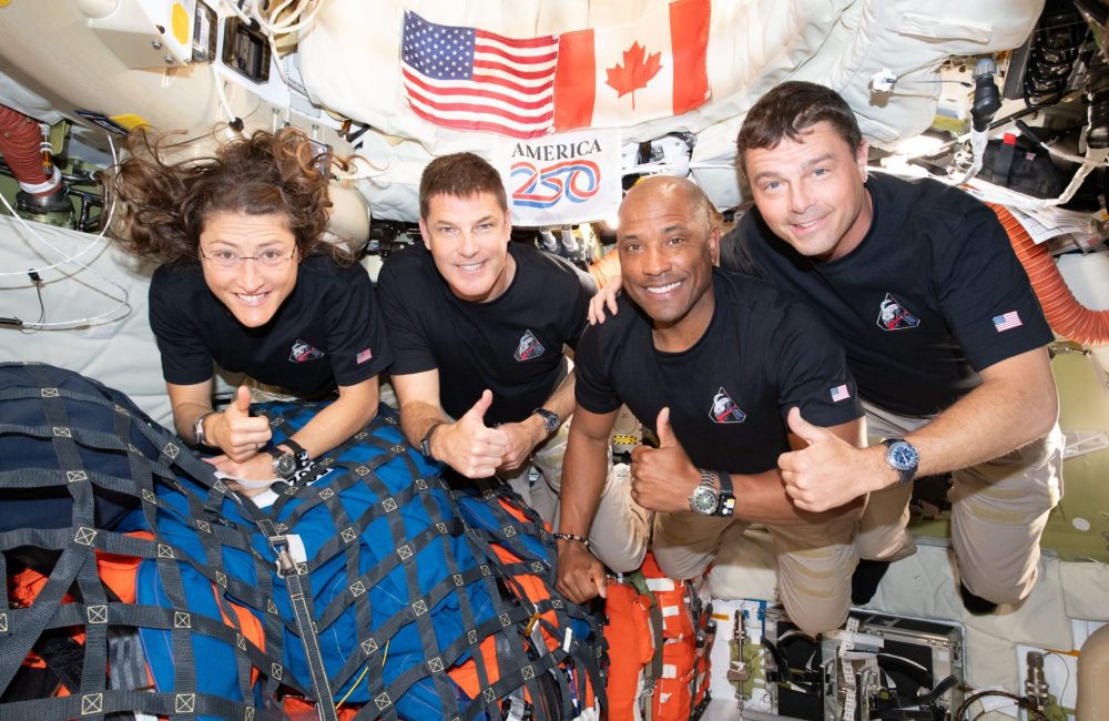 The four astronauts reached speeds of over 24,000 mph, equivalent to traveling across the continental U.S. in about six minutes. The 16.5-foot-wide heat shield reached approximately 5,000 degrees Fahrenheit, about half the temperature of the sun’s visible surface. The steeper, hotter trajectory also gave the capsule less range to maneuver away from bad weather near the Pacific splashdown zone.