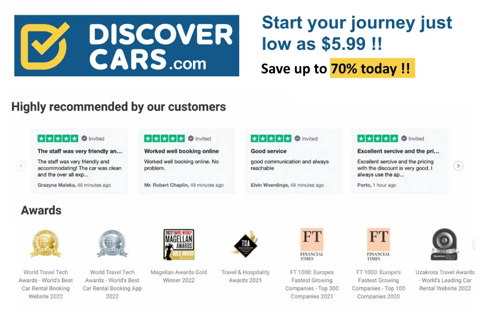 Are you ready to elevate your travel experience? Look no further than Discover Cars, the award-winning car rental comparison website that’s taking the globe-trotting community by storm! Recognized by prestigious entities like the World Travel Awards, Financial Times 1000, and Inc. 5000, Discover Cars has firmly established itself as the go-to platform for wanderers seeking seamless and affordable car rental solutions worldwide.