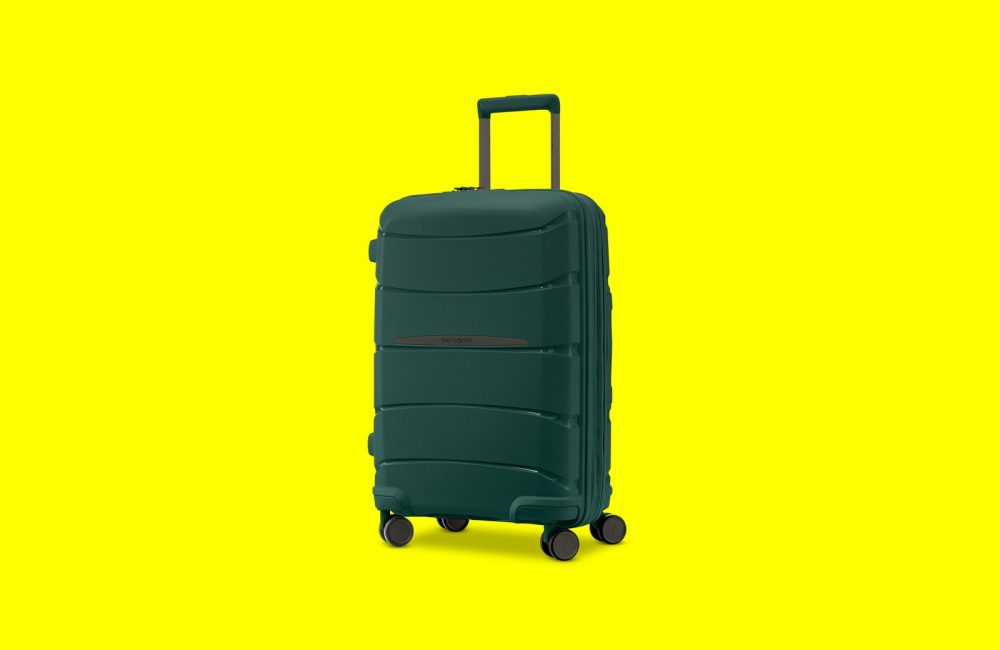 If you’re hunting for a hard-sided suitcase, this Samsonite is on sale. We like that the interior fabric is made from 100 percent recycled plastic bottles and that there’s a storage pocket designed to keep damp items separate from the rest of your luggage.