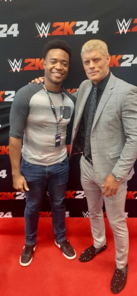 Myself and Cody (rocking a trademark expensive suit) hang at the WWE 2K24 event. Side note: his loafers were incredible.