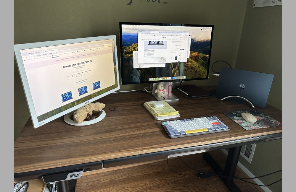 The port selection is identical, too—you’ll get a MagSafe charging port, two USB 4/Thunderbolt ports, and a 3.5-mm headphone jack. Typically, the limited ports wouldn’t bother me, since I only use the MacBook for writing, sending emails, making video calls, and streaming content. But it’s noticeable when connecting it to two external monitors (more on that later) because you’re left with zero ports. I would’ve liked to see at least one extra USB-C port to account for the new ability to connect to an extra monitor.